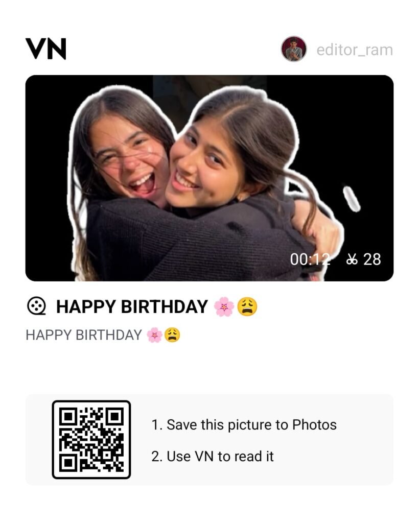 When you open the Happy Birthday Friend VN Template link or scan its VN QR code, the VN App opens automatically. You then select your photos or clips from the gallery, and the app instantly applies the template. In just a few seconds, your birthday video is ready. This process feels almost magical for users who have never edited a video before.